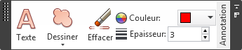 Vous avez la possibilité de modifier les paramètres des annotations à l'aide des options Epaisseur et Couleur. Ces modifications n'ont aucun effet sur les annotations déjà créées. Par ailleurs, l'épaisseur s'applique uniquement aux lignes ; elle n'a aucune incidence sur le texte d'annotation. Ce dernier possède une taille et une épaisseur par défaut non modifiables.
