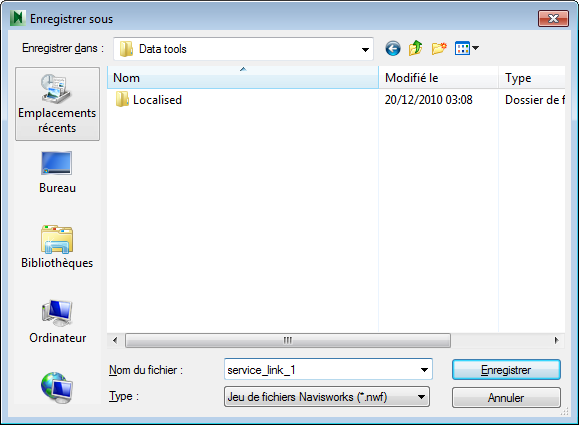 Dans la boîte de dialogue Enregistrer sous, accédez au dossier voulu et donnez un nom au fichier DataTools. Vous pouvez également sélectionner le nom d'un fichier DataTools existant afin de le remplacer par votre nouvelle configuration.