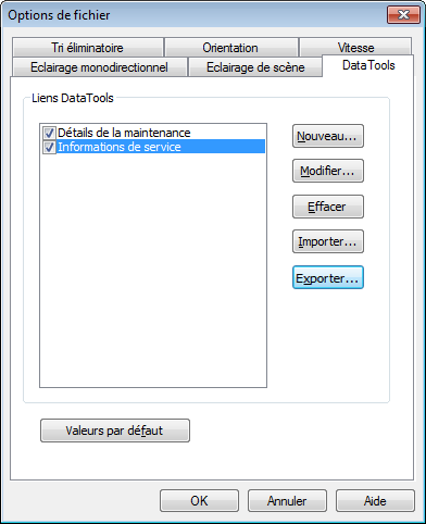 Dans l'onglet DataTools de la boîte de dialogue Options de fichier, cliquez sur le lien à exporter dans la zone Liens DataTools, puis cliquez sur le bouton Exporter.