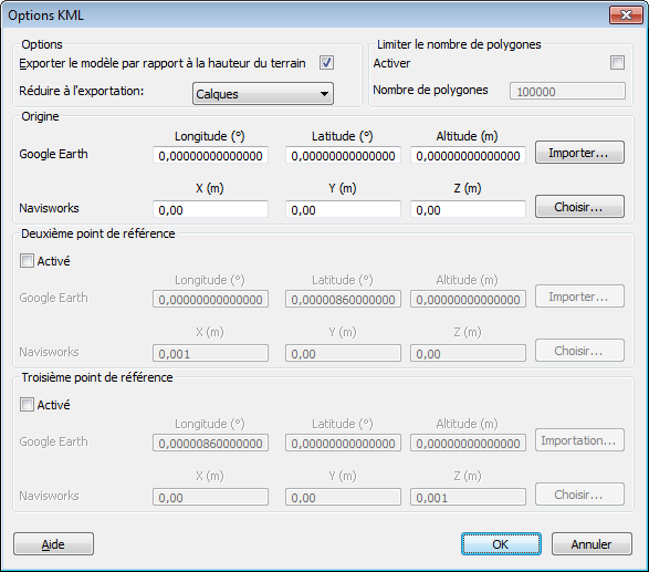 Ces points doivent être visibles dans la vue de la scène avant de commencer l'exportation, car vous ne pourrez plus naviguer dans la scène une fois la boîte de dialogue Options KML ouverte.
