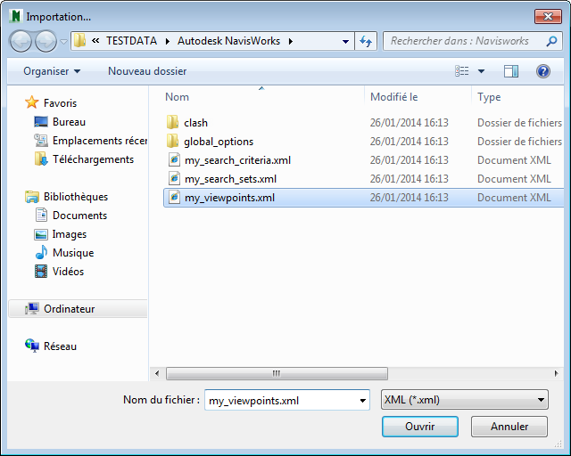 - Localisez le fichier XML de point de vue souhaité dans la boîte de dialogue Importer.
