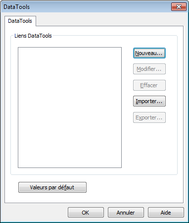 2. Dans la boîte de dialogue DataTools, cliquez sur le bouton Nouveau.