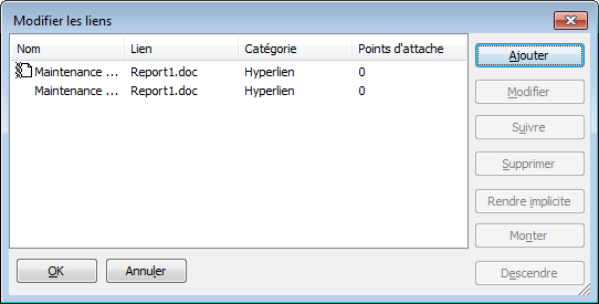 - Dans la boîte de dialogue Modifier les liens, cliquez sur le lien à redéfinir, puis cliquez sur le bouton Modifier.