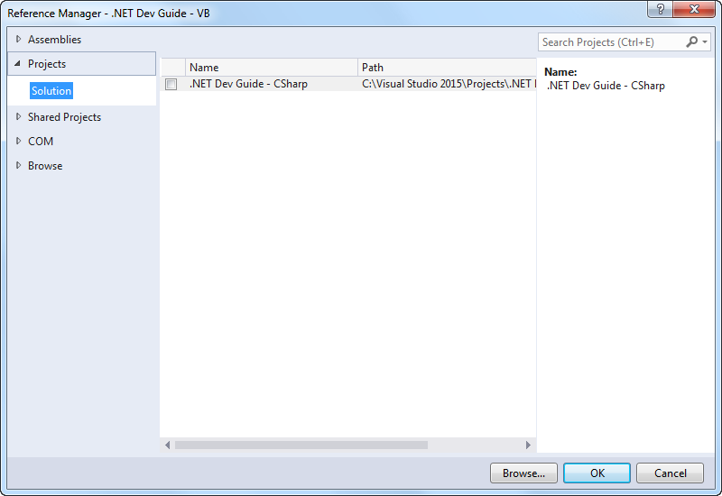 Adding and referencing projects allows you to share code across multiple projects. You can create centralized libraries of commonly used methods, functions and classes, and then reference the library when needed. Projects can be referenced in the following ways: