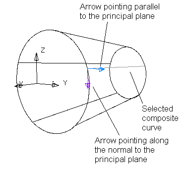 Si vous créez une surface de dépouille à partir d'une courbe composite, deux flèches sont dessinées sur la courbe composite. Ces deux flèches déterminent la direction de projection de la surface de dépouille.