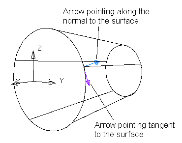 Avec Tangente à la surface sous-jacente sélectionné, les flèches pointent comme montré ci-dessous.