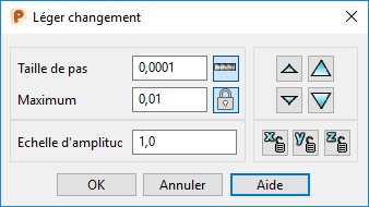 — Cliquez sur ces flèches pour déplacer le point vers le haut ou vers le bas. Chaque clic sur une petite flèche déplace le point sur X, Y ou Z par l'incrément spécifié dans Taille de pas. Chaque clic sur une grande flèche déplace le point de cinq fois l'incrément spécifié dans Taille de pas.