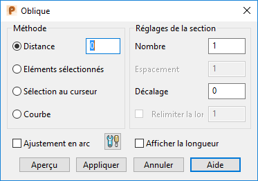 Un plan s'affiche pour montrer à quel endroit les courbes obliques coupent les éléments :