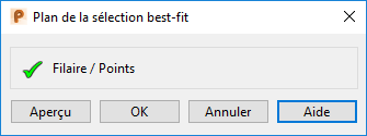 Si vous cliquez sur Avancé dans la boite de dialogue du surfaceur intelligent quand vous créez une surface en utilisant l'option Plan ajusté best-fit, la boite de dialogue Plan de la sélection best-fit s'affiche. Utilisez cette boite de dialogue pour sélectionner les éléments filaires ou les points et créer le plan.