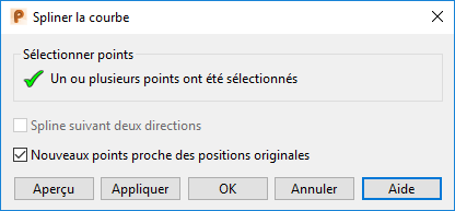 Conseil : Si vous n'avez pas sélectionné de points, ou que la sélection actuelle de points de courbe n'est pas correcte, vous pouvez sélectionner différents points de courbe quand la boite de dialogue est ouverte.
