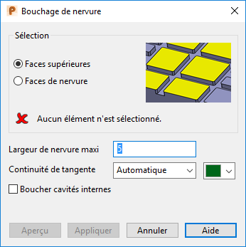 — Les faces de nervure sélectionnées qui seront bouchées sont mises en surbrillance.