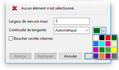 Dans la boite de dialogue Bouchage de nervure, le