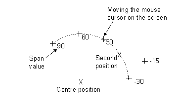 Une aide visuelle est affichée pour vous aider à saisir la troisième position. Cette fois, quand le curseur bouge, un arc est affiché. Il montre la valeur de l'intervalle par rapport à la position de départ de l'arc.