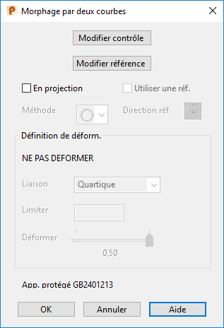 Pour les déformations de courbe et de surface, vous ne pouvez changer que la courbure. Les éléments sélectionnés ne peuvent pas être changés.