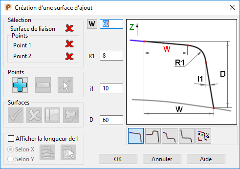 Les latérales qui sont utilisées lors de la création de surface d'ajout sont étendues à la ligne de poinçonnage.