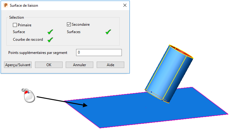 - Utilisez la boite de dialogue pour créer la surface de liaison :