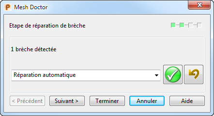 L'étape de réparation de brèche détecte toute brèche dans le maillage :