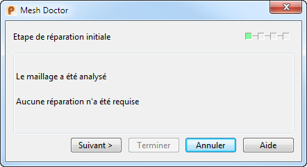 Remarque : Vous pouvez cliquer sur Terminer pour compléter Mesh Doctor à n'importe quel moment après qu'au moins une réparation ait été appliquée avec succès.