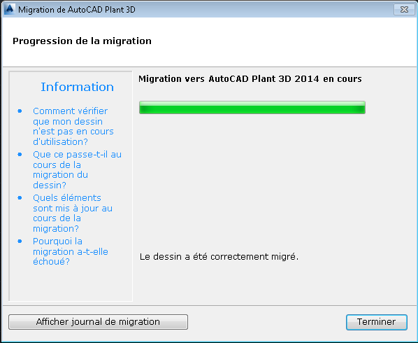 L'assistant de migration de dessin s'ouvre.