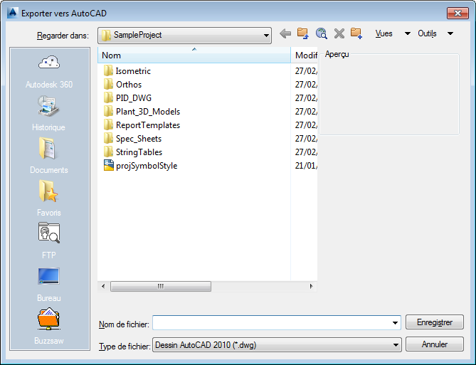 Utilisez AutoCAD 2010 pour visualiser ou modifier le dessin exporté.