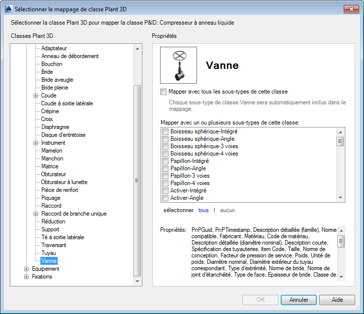 - Dans la boîte de dialogue Sélectionner le mappage de classe Plant 3D, effectuez les opérations suivantes :