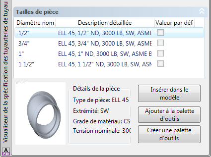 Ajoutez et supprimez des diamètres nominaux de composants dans une spécification des tuyauteries. Définissez les propriétés de composant dans la spécification des tuyauteries. Mettez à jour la spécification des tuyauteries en incluant les modifications apportées aux catalogues.