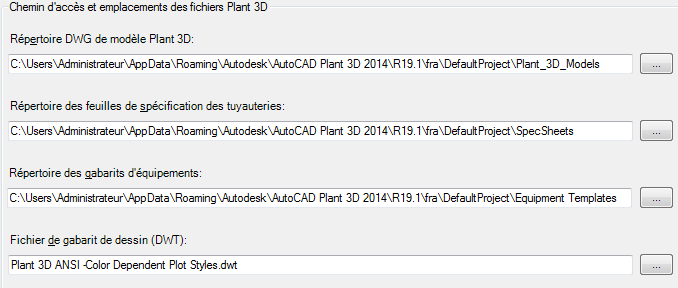 Pour définir de nouveaux chemins de projet (Plant 3D)