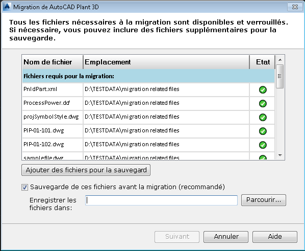 - Pour sauvegarder les fichiers, sur la page indiquant la disponibilité des fichiers, choisissez l'option Sauvegarde de ces fichiers avant la migration (recommandé), si elle n'est pas déjà sélectionnée.