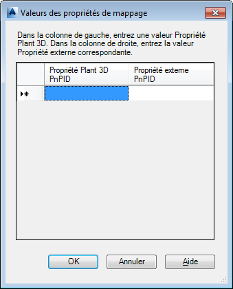 Le mappage de valeurs de propriété permet de définir des correspondances entre les valeurs de propriété de AutoCAD Plant 3D et celles d'un autre programme.