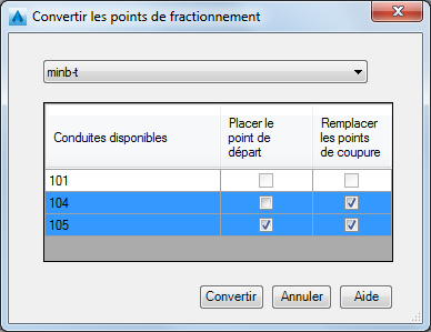 - Cliquez sur Convertir des points de fractionnement. La boîte de dialogue correspondante s'affiche.