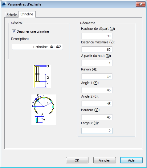Spécifie les paramètres de crinoline par défaut pour la création d'échelles.