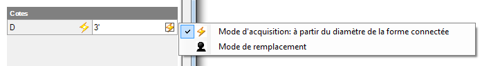 Les cotes courantes telles que le diamètre de cube utilisent le mode d'acquisition qui vous permet de mettre à jour le diamètre une fois et de faire en sorte que le reste de la cuve soit mis à jour en conséquence.