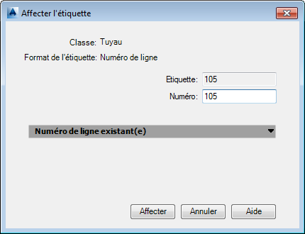 La liste Etiquette de numéro de ligne ne peut pas être activée dans la palette des propriétés si le tuyau sélectionné n'est connecté.