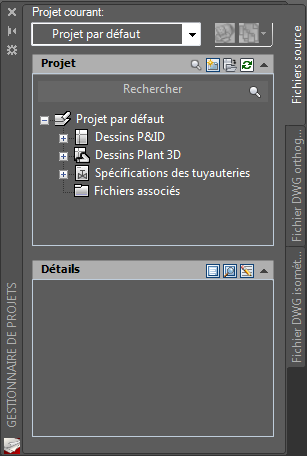 Fournit des informations sur le projet ou sur des dessins sélectionnés dans l'arborescence du Gestionnaire de projets.