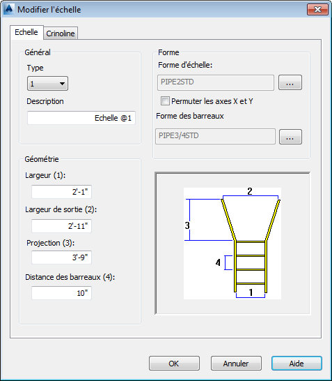Modifie les paramètres de crinoline d'une échelle structurelle.