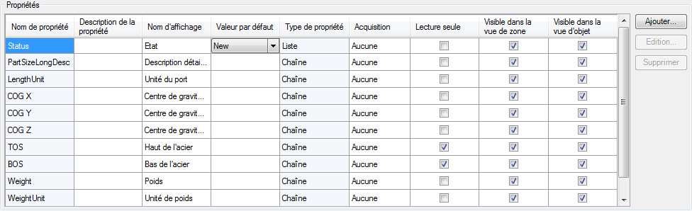 Ajoutez ou supprimez des propriétés personnalisées selon vos besoins pour la définition de classe ou de ligne.