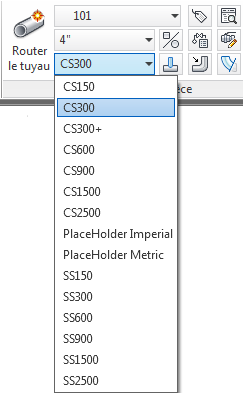 Dans la liste déroulante, cliquez sur une spécification des tuyauteries (p. ex. CS300).