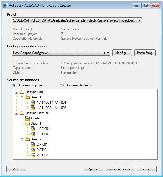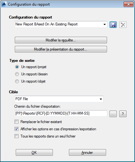 - Dans la boîte de dialogue Configuration du rapport, effectuez les opérations suivantes :