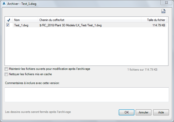 - Si le dessin que vous archivez contient des références à d'autres fichiers (fichiers associés à Vault), vous pouvez sélectionner la colonne d'archivage pour d'autres dessins.