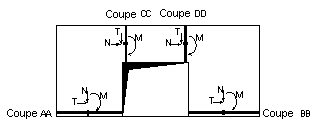 Les sections transversales sur lesquelles les efforts réduits doivent être récupérés peuvent être horizontales (en pied de voile - Section AA et Section BB) ou verticales (Section CC et Section DD).