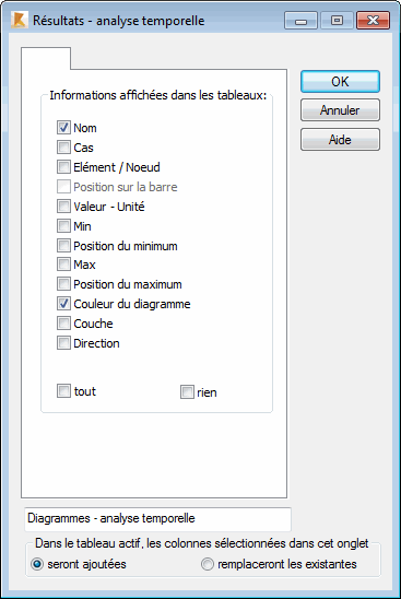 Les options décrivent le diagramme affiché et permettent de présenter les valeurs extrêmes calculées pour la structure.