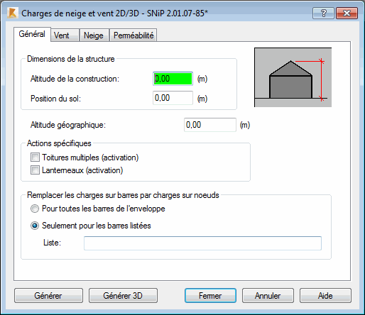 Après l’ouverture de la boîte de dialogue Charge de neige et vent et un clic sur l’onglet Général, la boîte de dialogue suivante s'affiche.