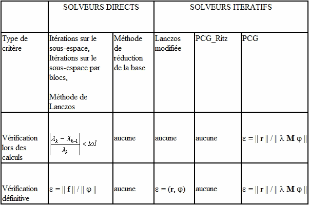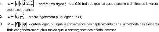 Trois critères différents d’estimation des erreurs de calcul des vecteurs propres s’appliquent :