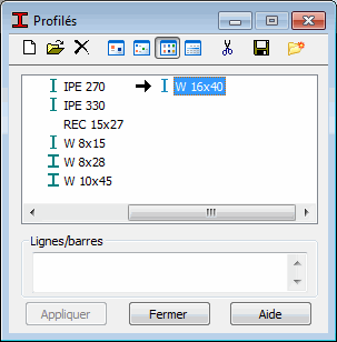 De même que dans la boîte de dialogue de définition des appuis, le procédé d’affectation des profils aux barres de la structure est divisé en deux étapes :