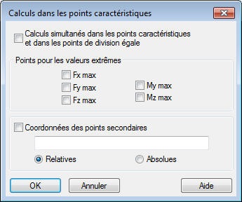 Dans la boîte de dialogue ci-dessus, vous pouvez déterminer les points caractéristiques pour lesquels seront effectués les calculs de barres :