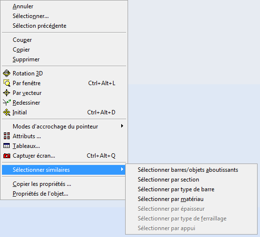 Toutes les options du menu contextuel ne sont pas disponibles dans chaque instance, car bon nombre d'entre elles dépendent du type d’objet sélectionné.