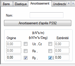 Cliquez sur Amortissement selon la norme PS92 pour ouvrir une boîte de dialogue qui vous permettra de définir les valeurs d'amortissement utilisées dans la formule indiquée dans la norme sismique PS 92. Dans le point 5, section 6.2.3.4 de la norme sismique française PS 92 (NF P 06-013), il est nécessaire de prendre en compte les interactions de la structure avec le sol et, par conséquent, son influence sur la valeur d'amortissement .