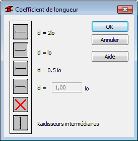L’option Type de déversement sert à définir les paramètres réglementaires demandées en fonction du schéma statique de la barre. L’option est disponible après un clic sur l’icône correspondante affichée dans la zone Paramètres de déversement affichée dans la boîte de dialogue Définition des barres - paramètres.