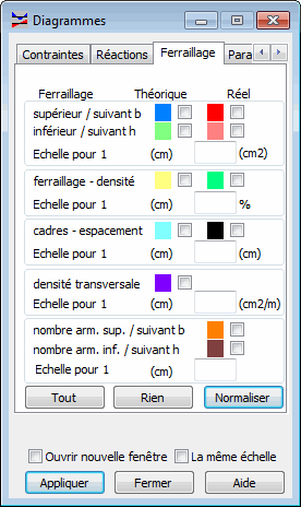 Utilisez cette boîte de dialogue pour sélectionner les grandeurs pour lesquelles vous souhaitez afficher les diagrammes des barres de structure.