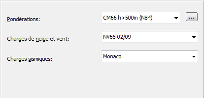 - Charges de neige et vent - cliquez sur la flèche pour sélectionner les normes requises pour le calcul des actions de la neige et du vent.